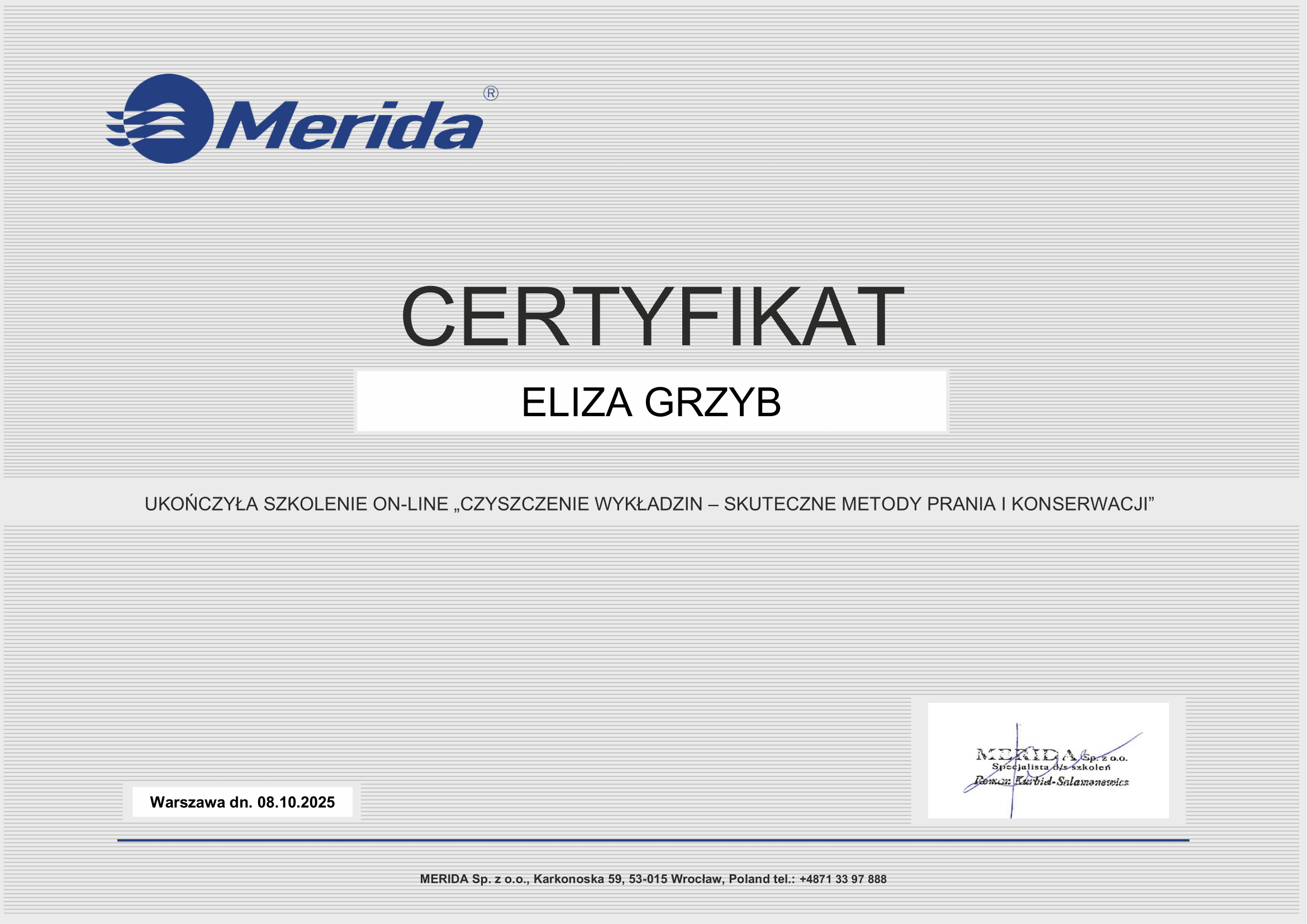 📸 Sprawdź naszą galerię certyfikatów i przekonaj się, że jakość w Harmony Cleaning to nie slogan, ale konkretny standard potwierdzony dokumentami.